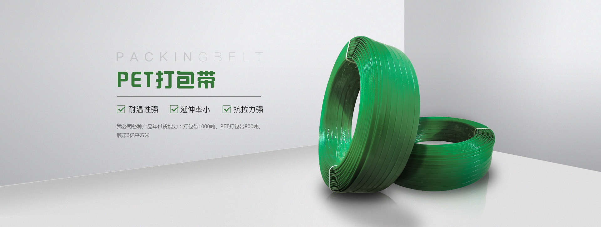 我公司各種產(chǎn)品年供貨能力:打包帶1000噸、PET打包帶800噸、膠帶3億平方米